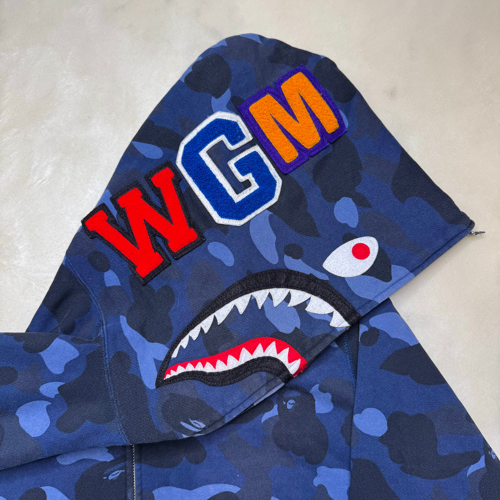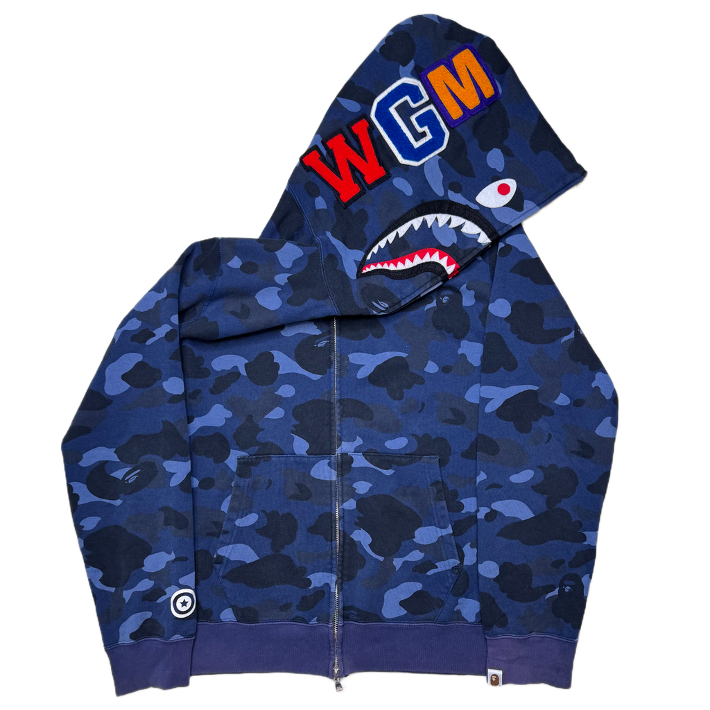 [L] Bape Blue 1st Camo Full-Zip Shark Hoodie