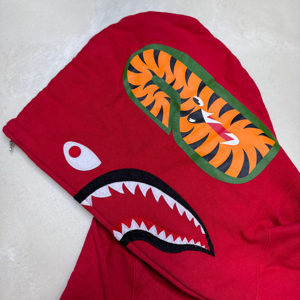 [L] Bape Half Red Camo Full-Zip Shark Hoodie